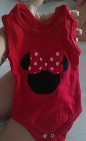 estava com uma roupinha vermelha da Minnie e, em outra, a mãe usava um Wrap